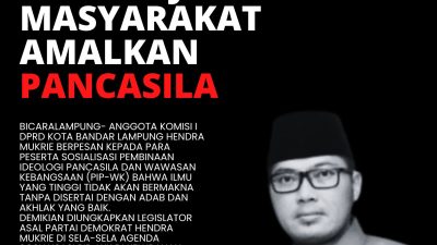 BICARALAMPUNG– Anggota Komisi I DPRD Kota Bandar Lampung Hendra Mukrie berpesan kepada para peserta Sosialisasi…