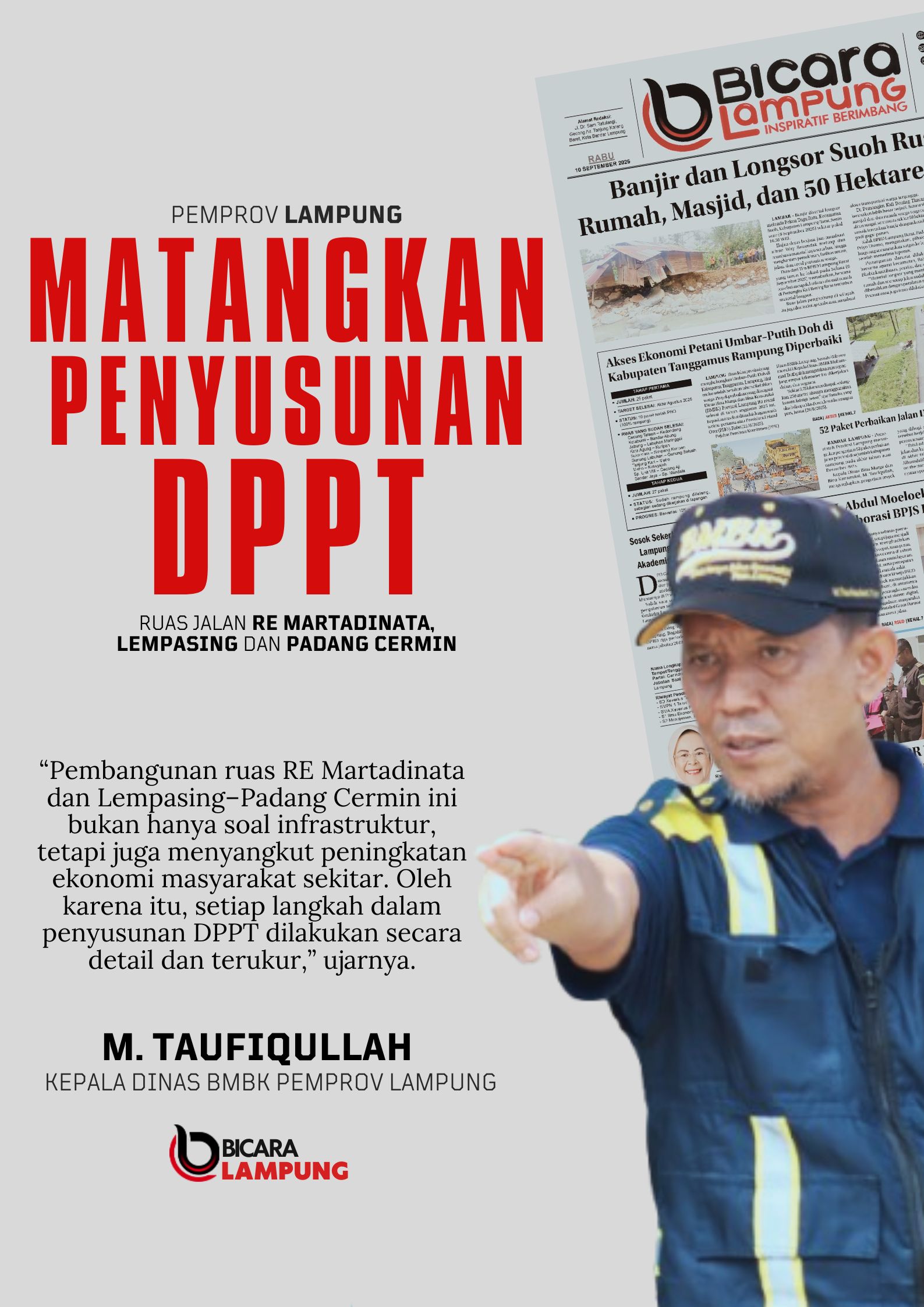“Pembangunan ruas RE Martadinata dan Lempasing–Padang Cermin ini bukan hanya soal infrastruktur, tetapi juga menyangkut peningkatan ekonomi masyarakat sekitar. Oleh karena itu, setiap langkah dalam penyusunan DPPT dilakukan secara detail dan terukur,” ujarnya.