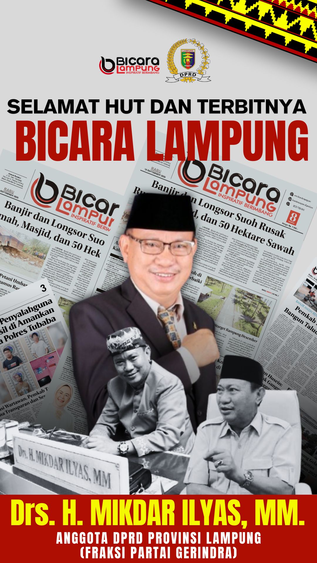 Anggota DPRD Provinsi Lampung, Drs. H. MIKDAR ILYAS, MM. Mengucapkan Selamat Atas Terbitnya Bicara Lampung