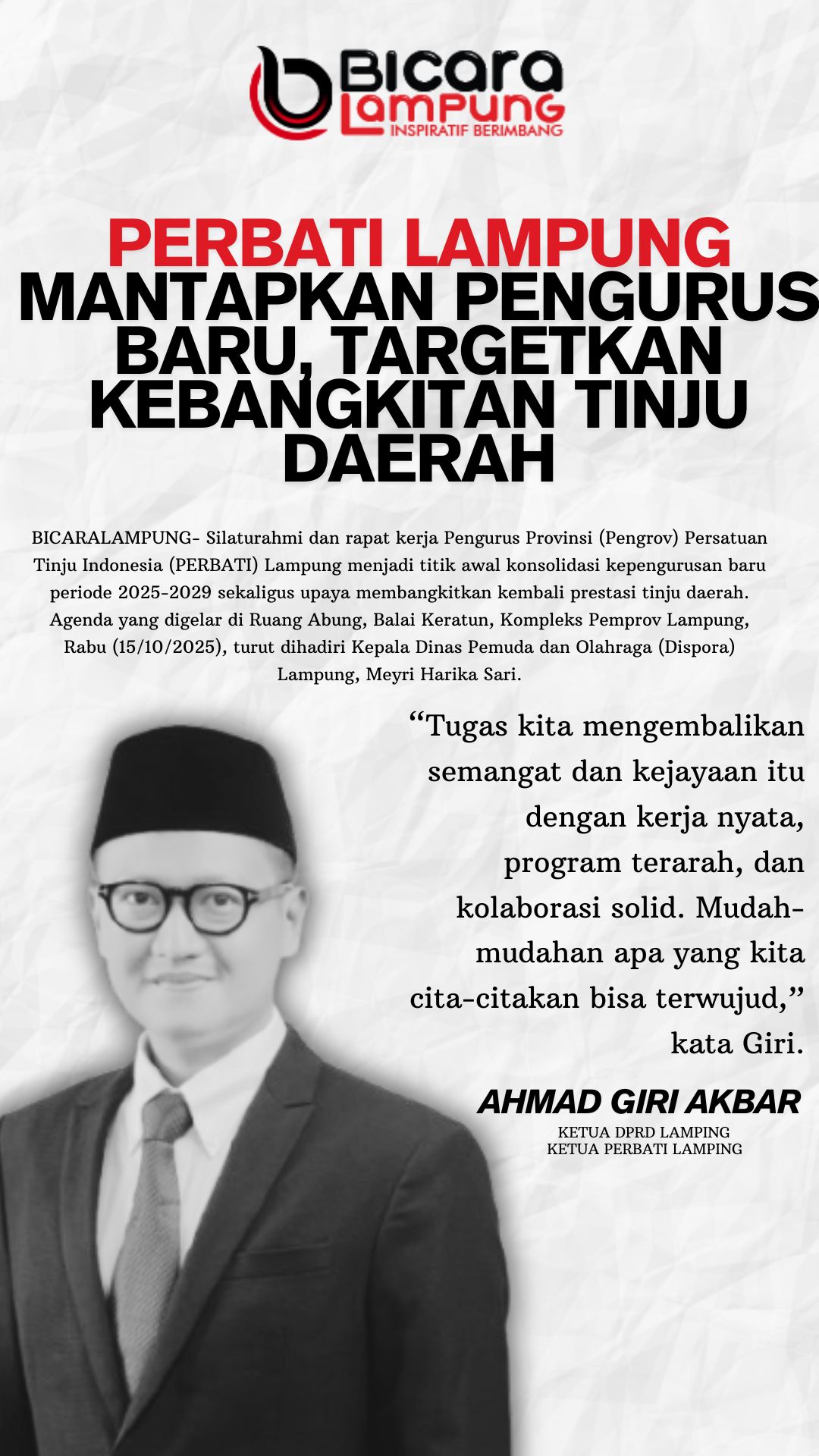 Dengan struktur tersebut, PERBATI Lampung menargetkan pembinaan dari usia dini hingga prestasi nasional dan internasional, sekaligus mengembalikan reputasi Lampung di dunia tinju. (*)