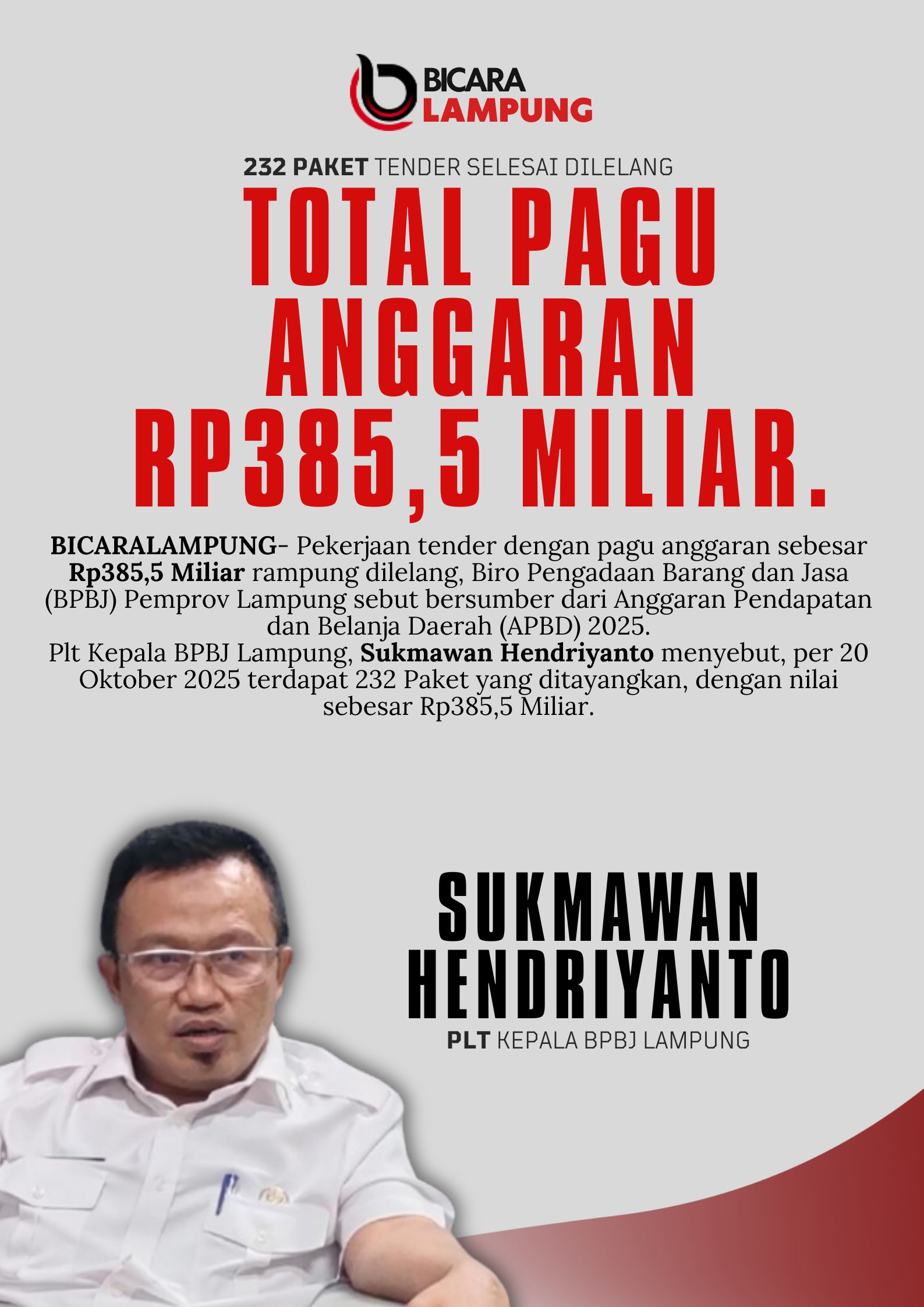 Plt Kepala BPBJ Lampung, Sukmawan Hendriyanto menyebut, per 20 Oktober 2025 terdapat 232 Paket yang ditayangkan, dengan nilai sebesar Rp385,5 Miliar.