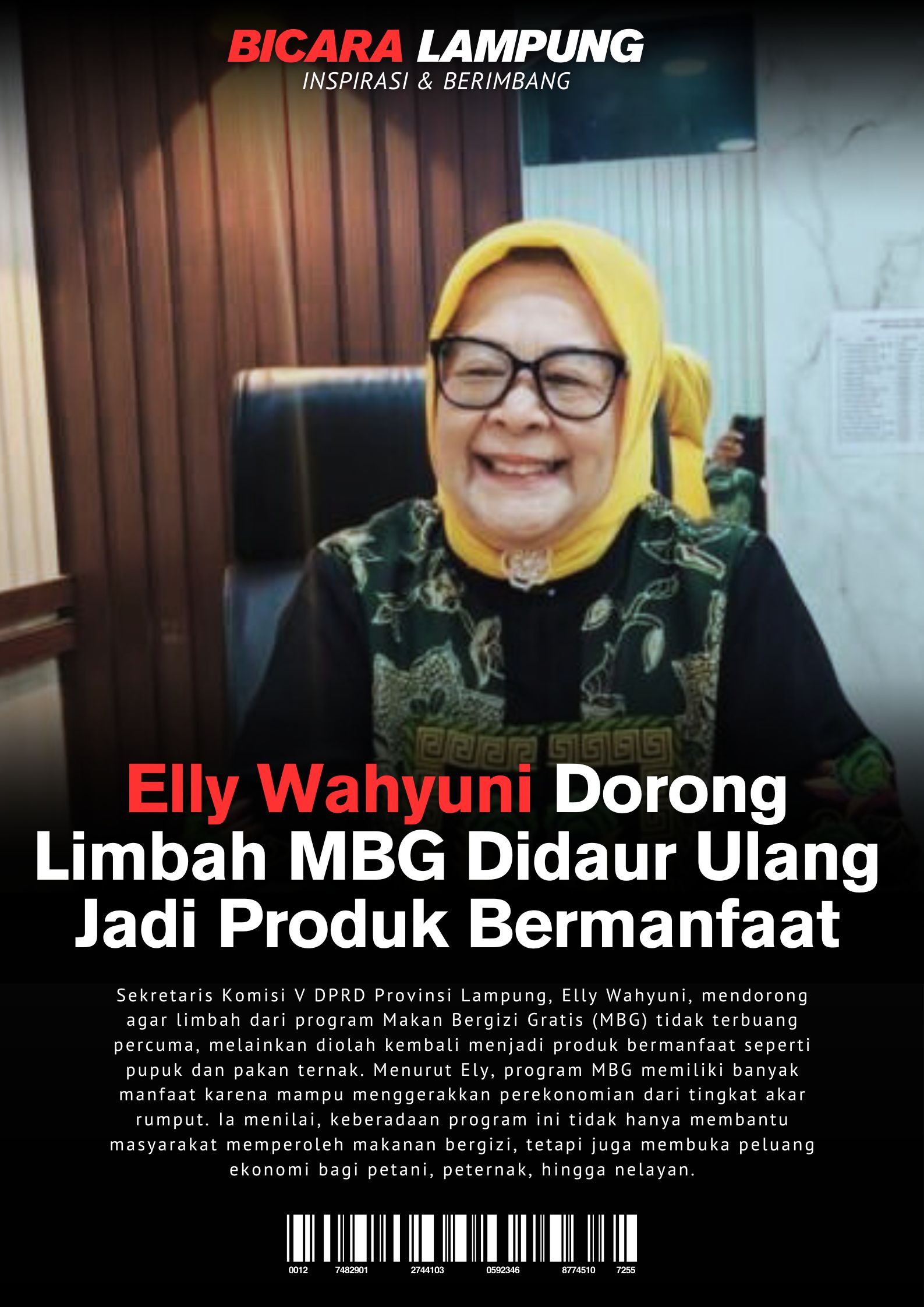 BICARALAMPUNG– Sekretaris Komisi V DPRD Provinsi Lampung, Elly Wahyuni, mendorong agar limbah dari program Makan Bergizi Gratis (MBG) tidak terbuang percuma, melainkan diolah kembali menjadi produk bermanfaat seperti pupuk dan pakan ternak.