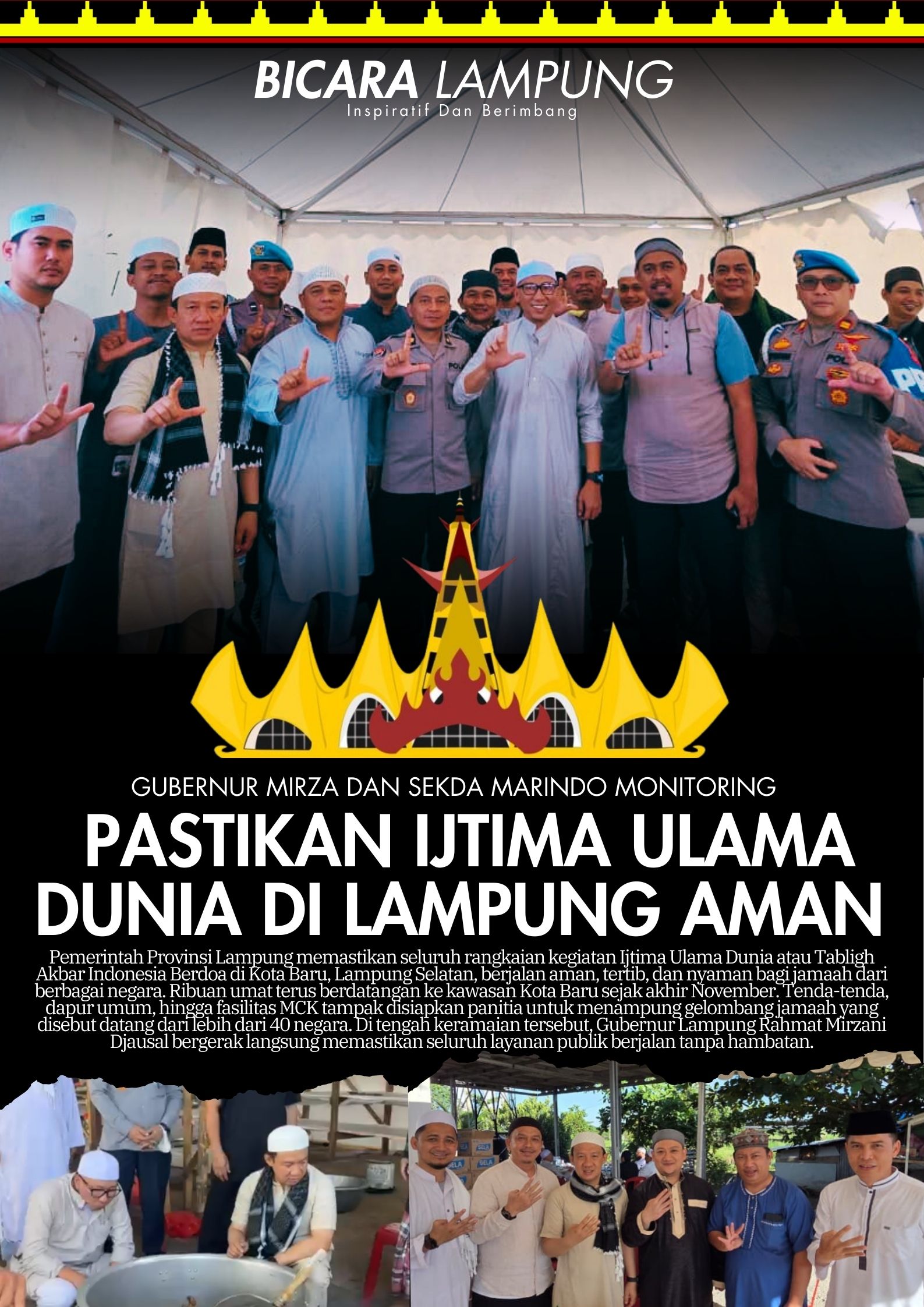 BICARALAMPUNG– Pemerintah Provinsi Lampung memastikan seluruh rangkaian kegiatan Ijtima Ulama Dunia atau Tabligh Akbar Indonesia Berdoa di Kota Baru, Lampung Selatan, berjalan aman, tertib, dan nyaman bagi jamaah dari berbagai negara.