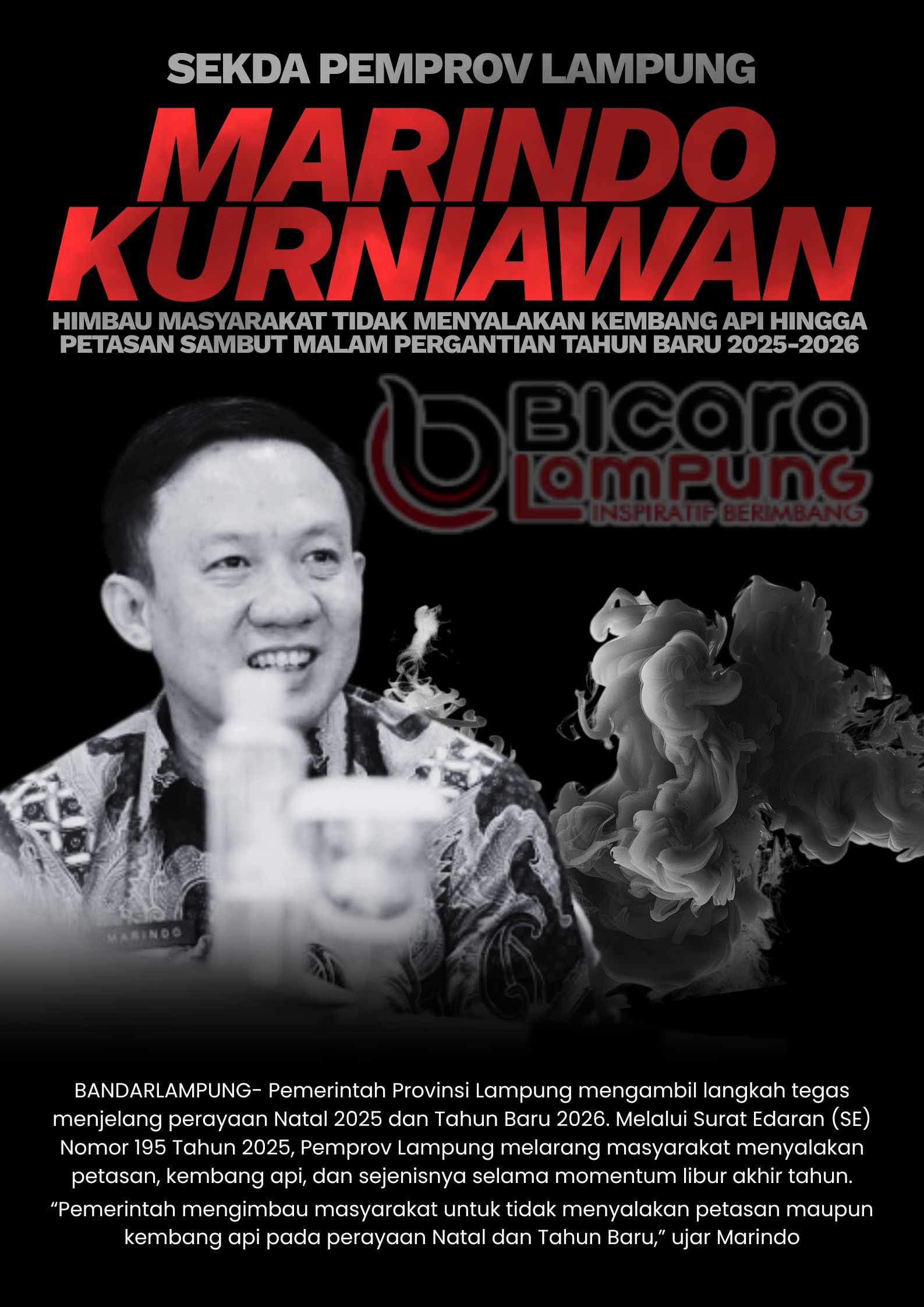 Melalui Surat Edaran (SE) Nomor 195 Tahun 2025, Pemprov Lampung melarang masyarakat menyalakan petasan, kembang api, dan sejenisnya selama momentum libur akhir tahun.