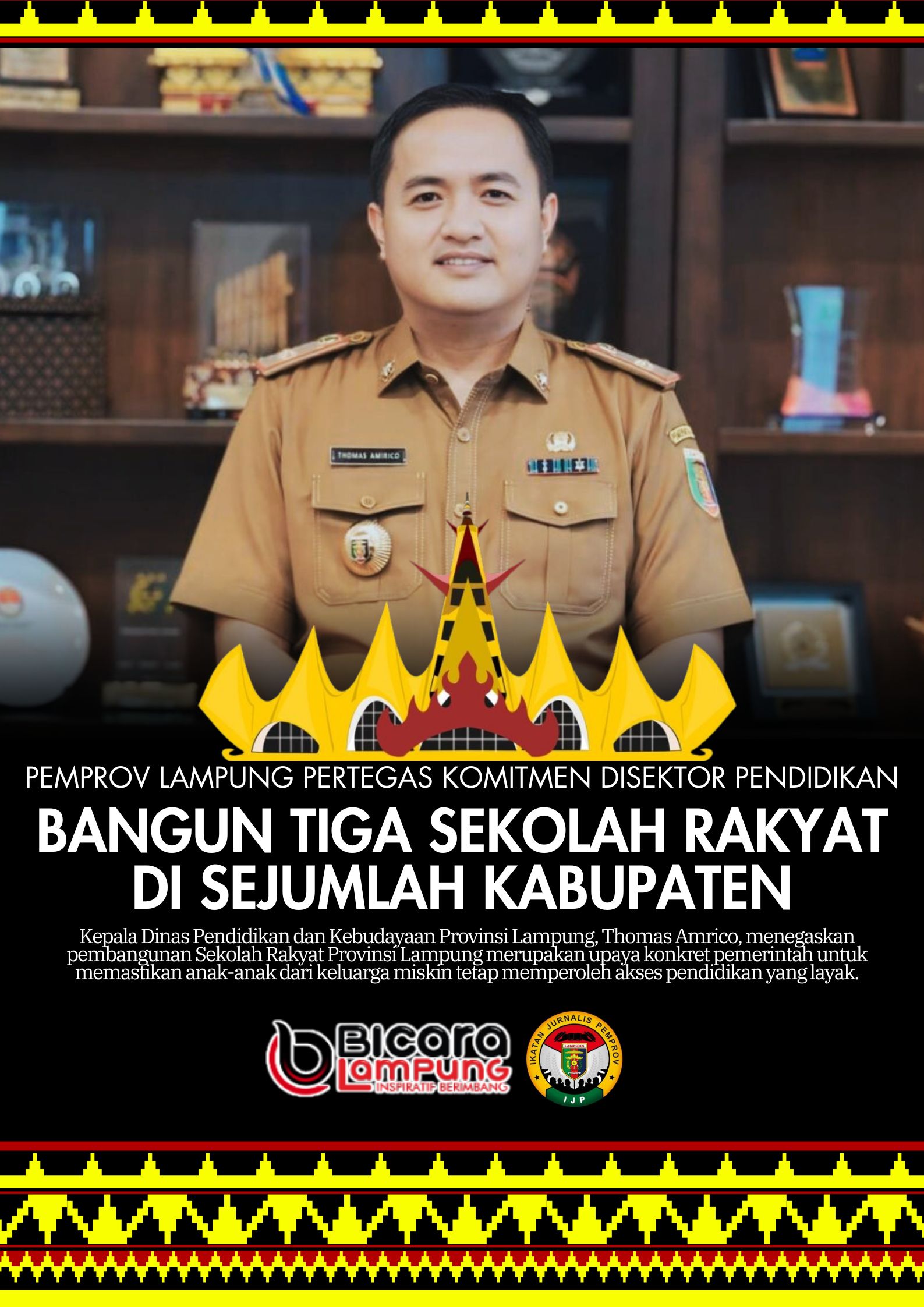 BICARALAMPUNG– Kepala Dinas Pendidikan dan Kebudayaan Provinsi Lampung, Thomas Amrico, menegaskan pembangunan Sekolah Rakyat Provinsi Lampung merupakan upaya konkret pemerintah untuk memastikan anak-anak dari keluarga miskin tetap memperoleh akses pendidikan yang layak.