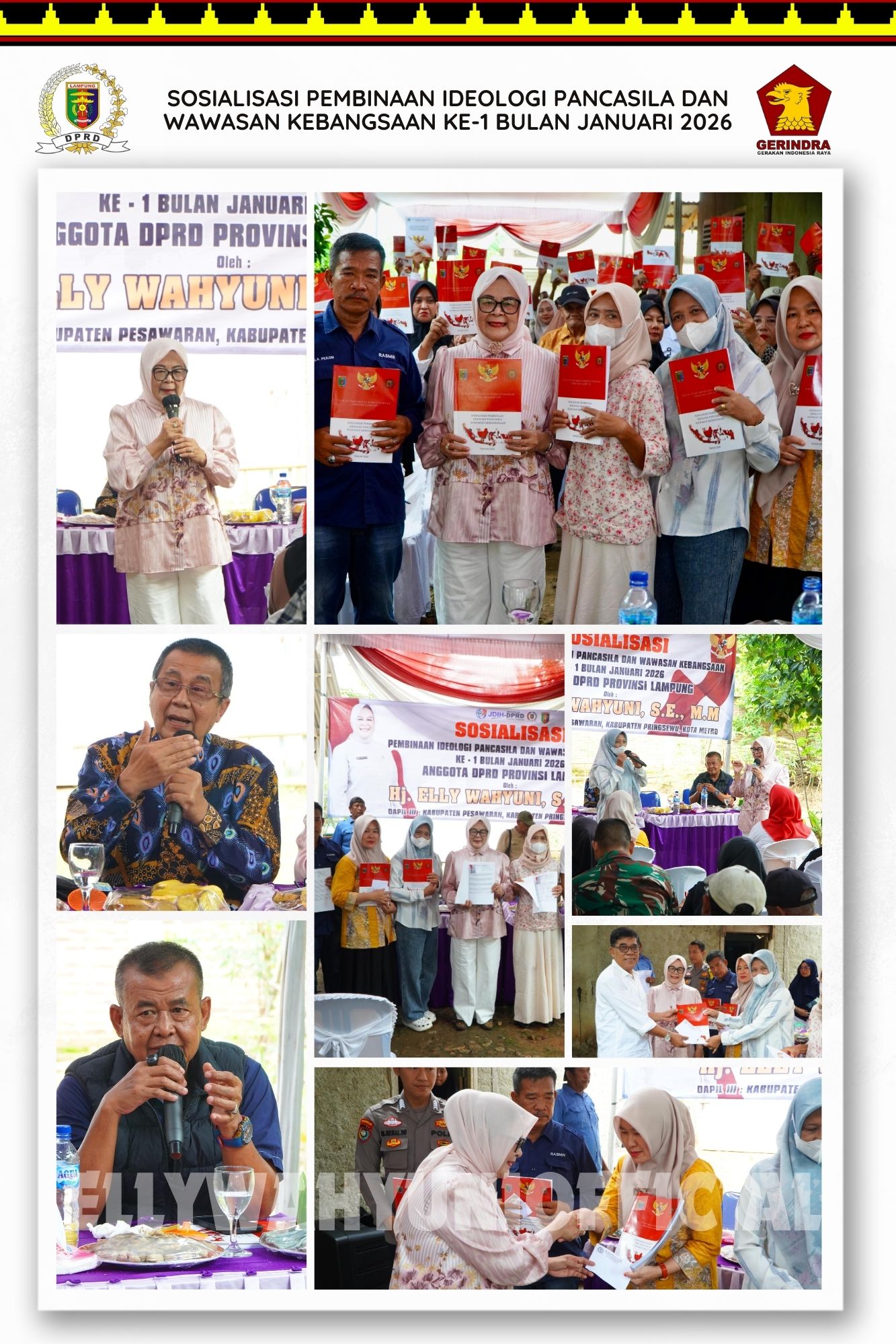 BICARALAMPUNG– Sekretaris Komisi V DPRD Provinsi Lampung, Elly Wahyuni, menegaskan pentingnya memperkuat kembali ideologi Pancasila dan wawasan kebangsaan di tengah tantangan moral dan sosial yang kian mengkhawatirkan. Hal itu disampaikannya dalam sosialisasi Pembinaan Ideologi Pancasila dan Wawasan Kebangsaan di Pekok Podo Sari, Kecamatan Pringsewu, Kabupaten Pringsewu, Minggu (18/1).