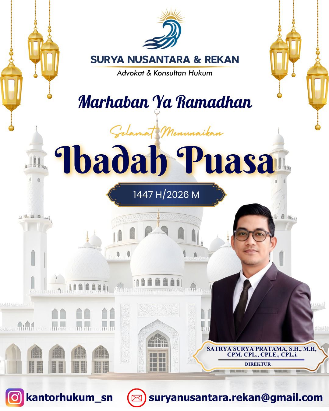 BICARALAMPUNG – Kantor Advokat dan Konsultan Hukum Surya Nusantara & Rekan menyampaikan ucapan Marhaban Ya Ramadhan sekaligus Selamat Menunaikan Ibadah Puasa kepada seluruh umat Muslim yang menjalankan ibadah di bulan suci Ramadhan 1447 Hijriah/2026 Masehi.