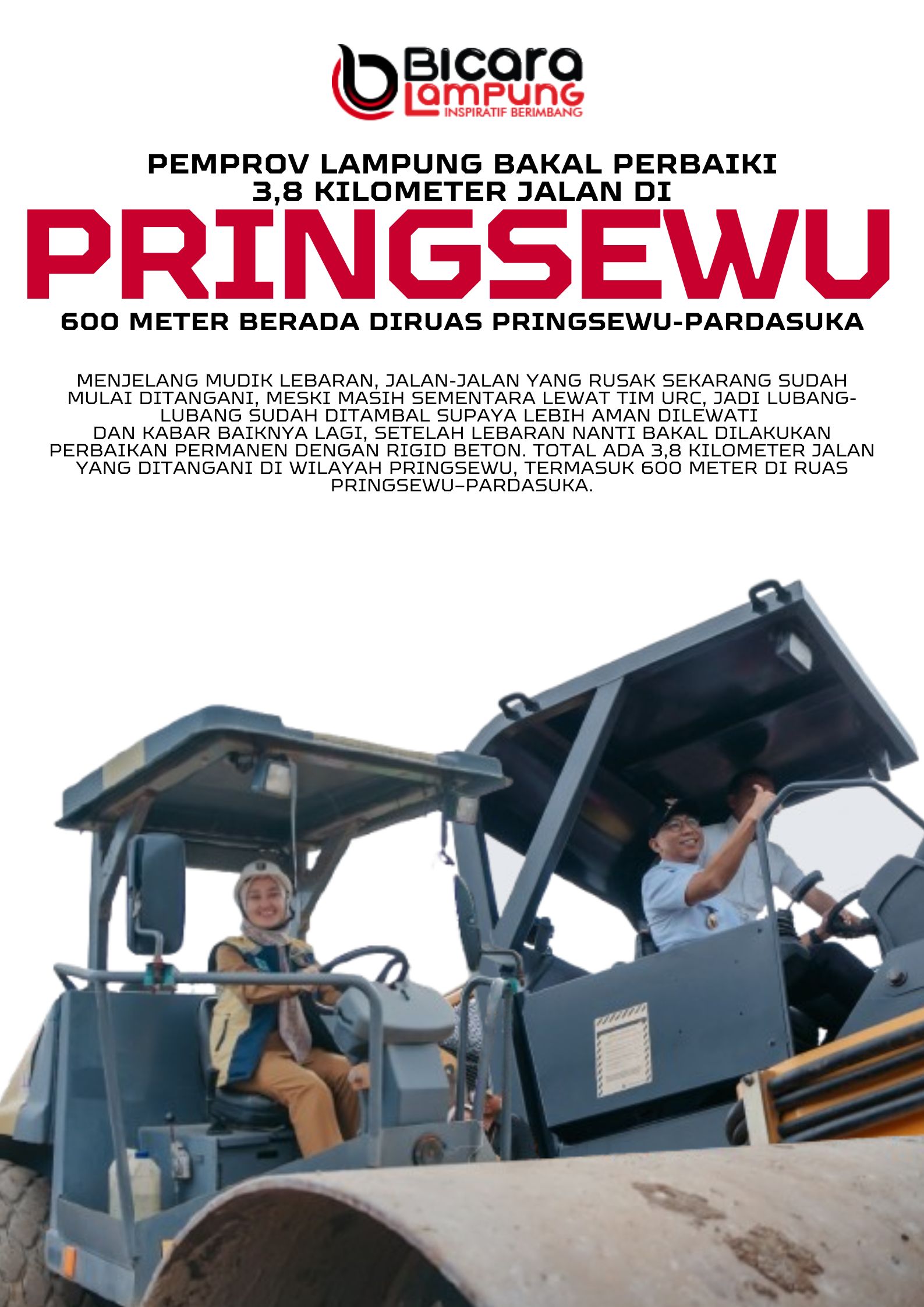 Total ada 3,8 kilometer jalan yang ditangani di wilayah Pringsewu, termasuk 600 meter di ruas Pringsewu–Pardasuka.