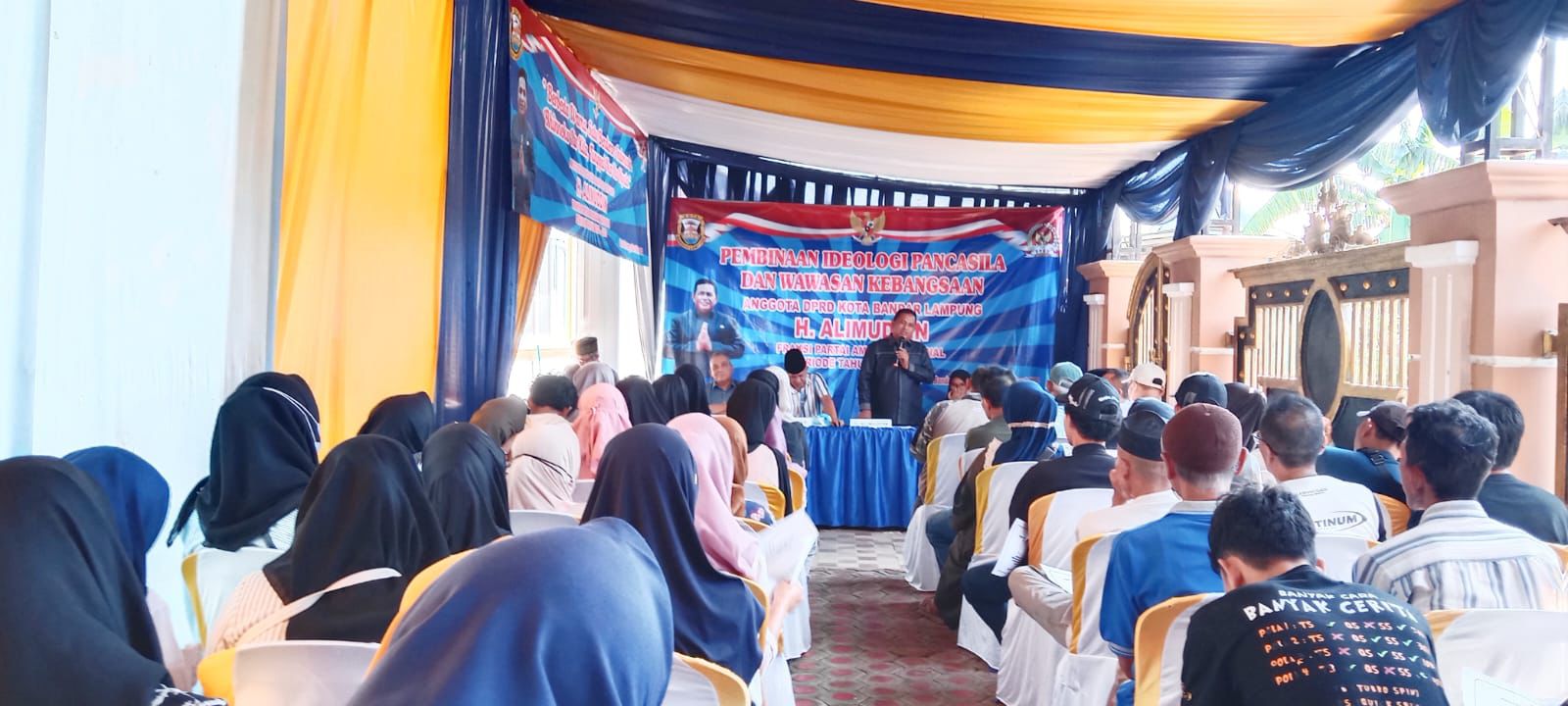 Diketahui, kegiatan sosialisasi ideologi pancasila yang dilakukan oleh anggota DPRD Kota Bandar Lampung Hi. Alimuddin menghadirkan dua narasumber yakni Marfen Effendi salah seorang politisi DPD PAN Bandarlampung dan Surya Jaya Ampera yang merupakan mantan anggota DPRD Bandarlampung. (*)