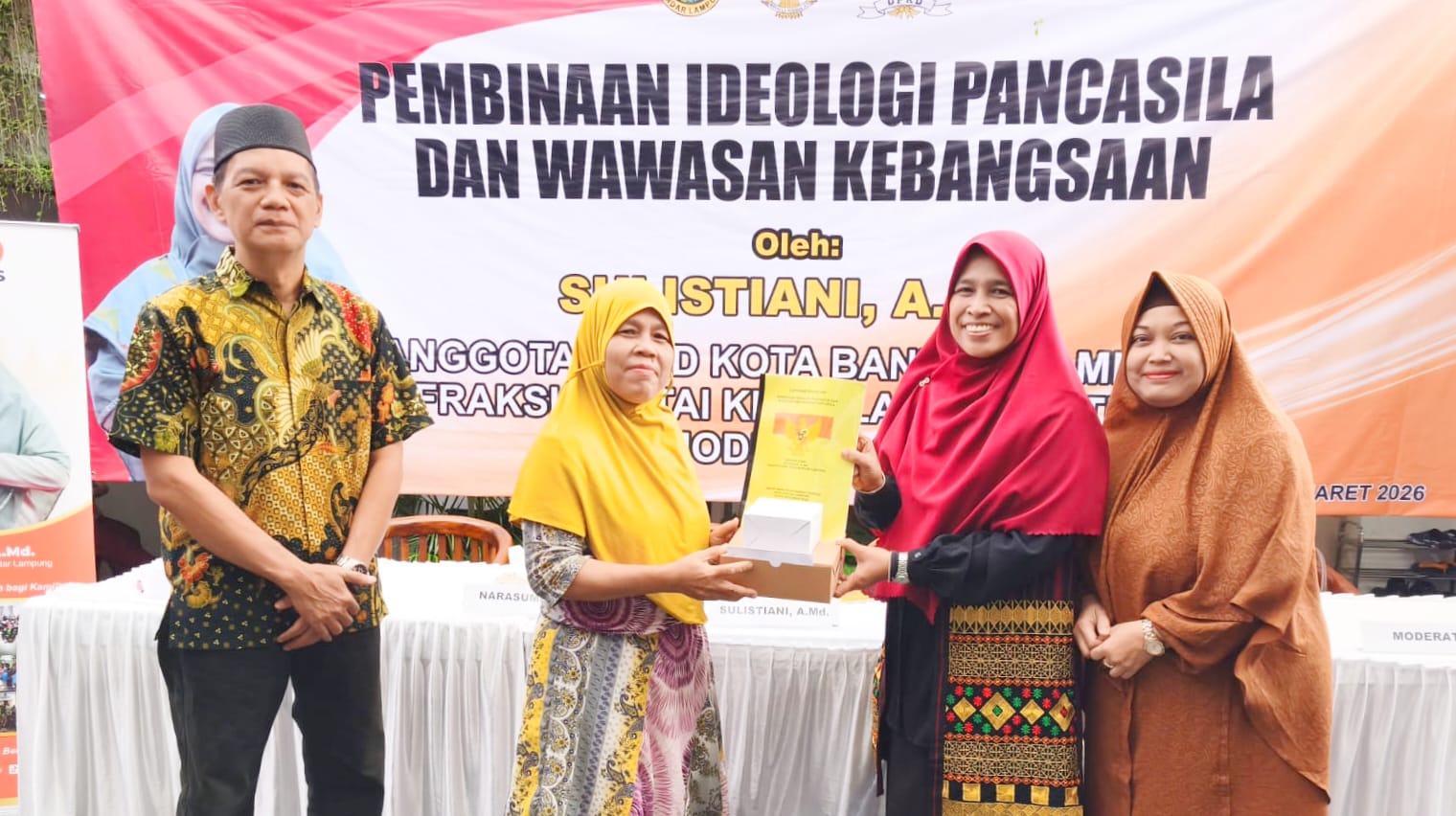 “Saya mensuport, agar generasi muda, Gen-Milenial, Gen-Z, untuk senantiasa mengamalkan nilai-nilai Pancasila dalam kehidupan sehari-hari dan menjadi agen perubahan positif di masyarakat,” ujar Anggota Komisi IV DPRD Kota Bandar Lampung, Sulistiani, Amd, dalam kegiatan sosialisasi ideologi Pancasila dan wawasan kebangsaan (PIP-WK) di Kelurahan Sumberrejo, Kecamatan Kemiling, pada Minggu (08/3/2026).