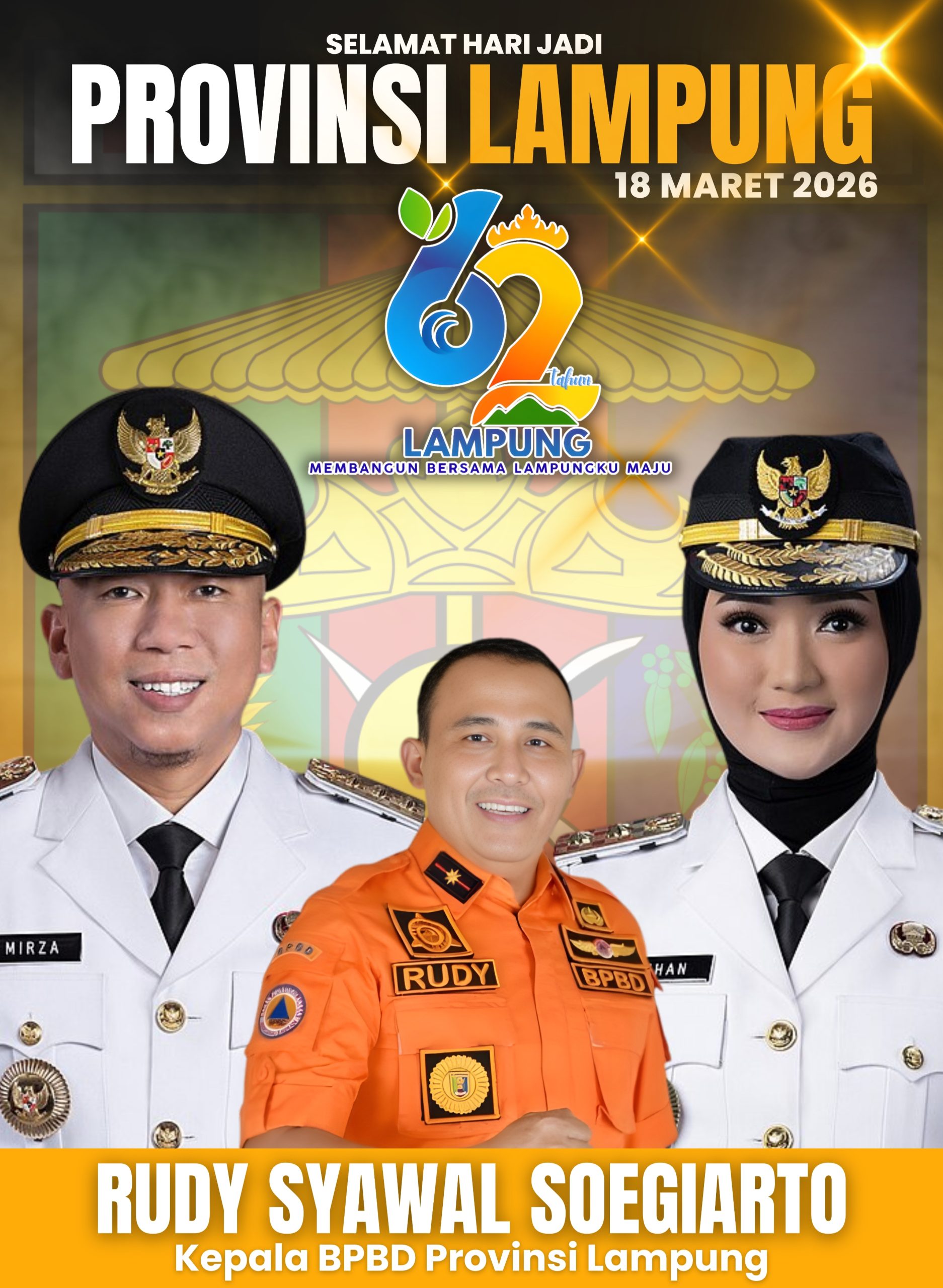 Kepala BPBD Provinsi Lampung, Rudy Syawal Soegiarto Mengucapkan Selamat HUT Provinsi Lampung Ke-62 Tahun