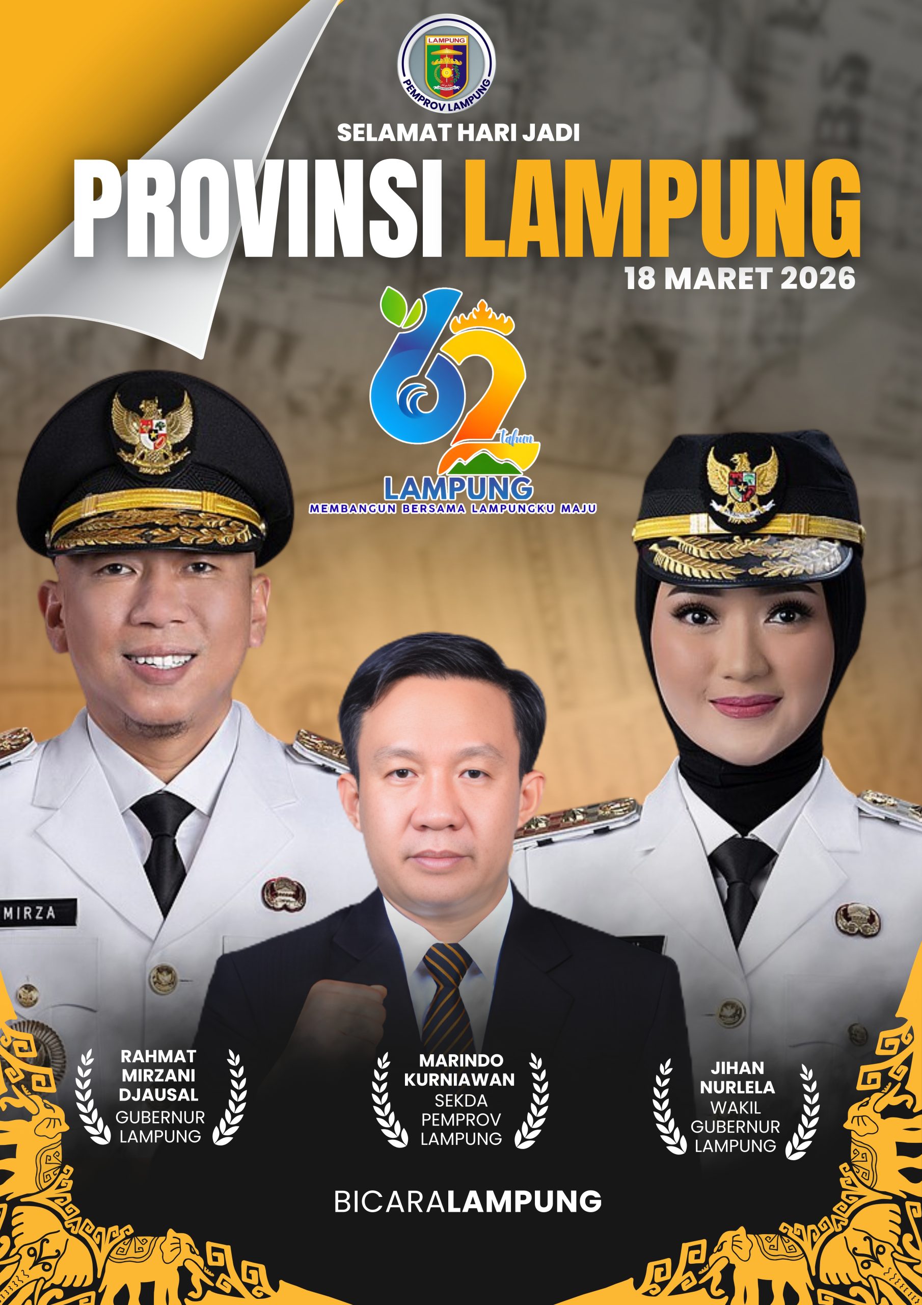 Sekretaris Daerah Pemprov Lampung, Marindo Kurniawan Mengucapkan Selamat HUT Provinsi Lampung ke-62 Tahun