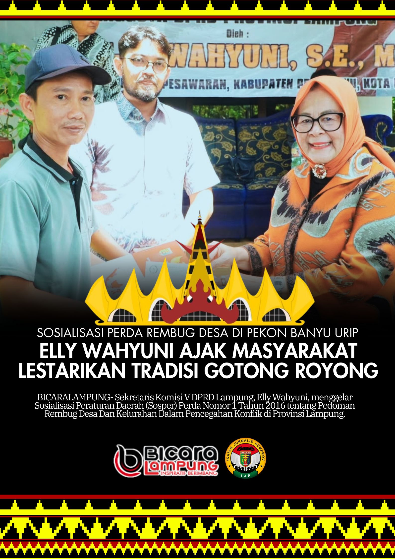 BICARALAMPUNG– Sekretaris Komisi V DPRD Lampung, Elly Wahyuni, menggelar Sosialisasi Peraturan Daerah (Sosper) Perda Nomor 1 Tahun 2016 tentang Pedoman Rembug Desa Dan Kelurahan Dalam Pencegahan Konflik di Provinsi Lampung.
