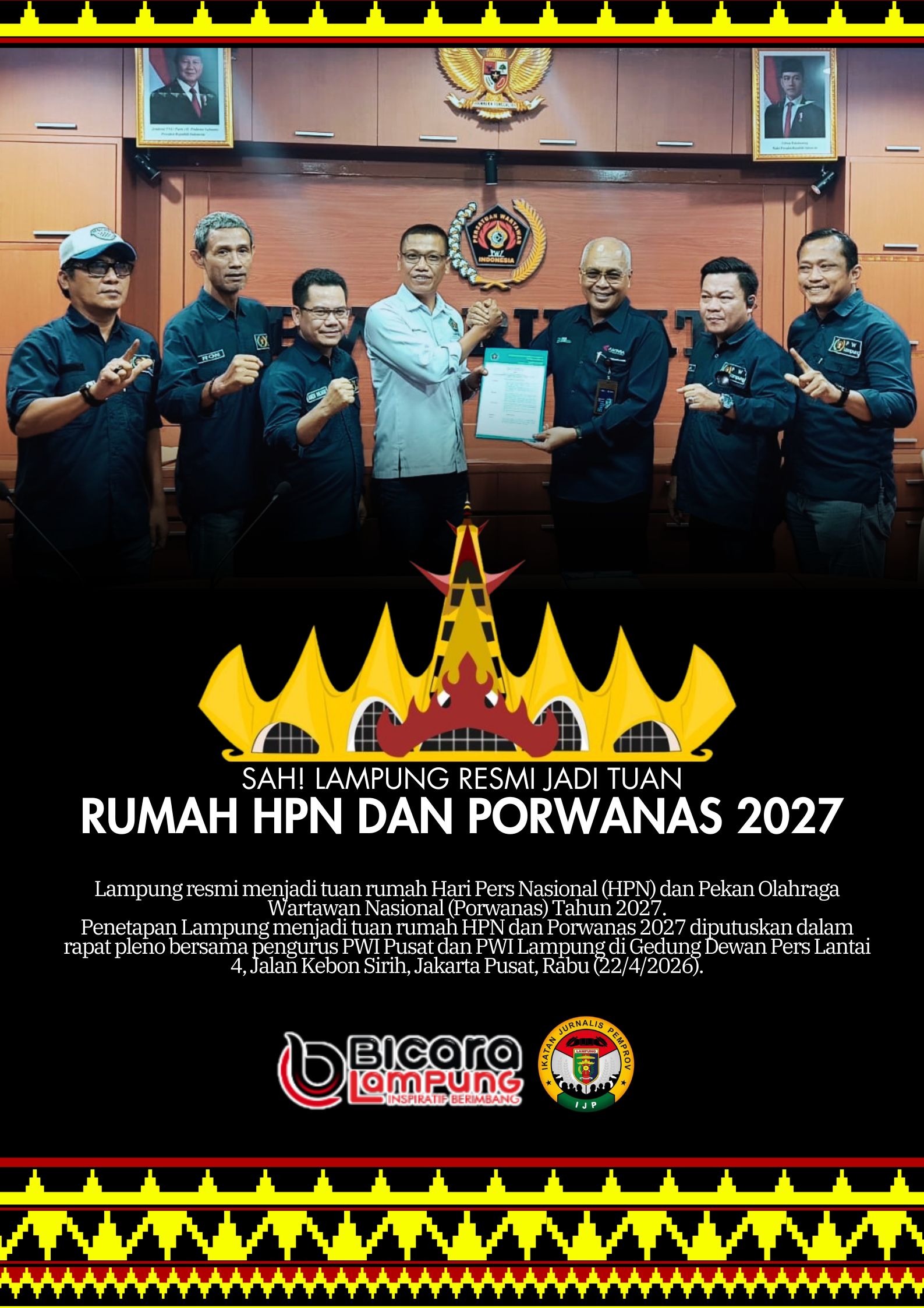 “Alhamdulillah, PWI Pusat sudah resmi mengeluarkan surat keputusan tentang penetapan Lampung menjadi tuan rumah HPN dan Porwanas 2027,” katanya usai menerima SK PWI Pusat Nomor: 077-PLP/PP-PWI/IV/2026 tentang penetapan Lampung sebagai tuan rumah HPN dan Porwanas 2027.