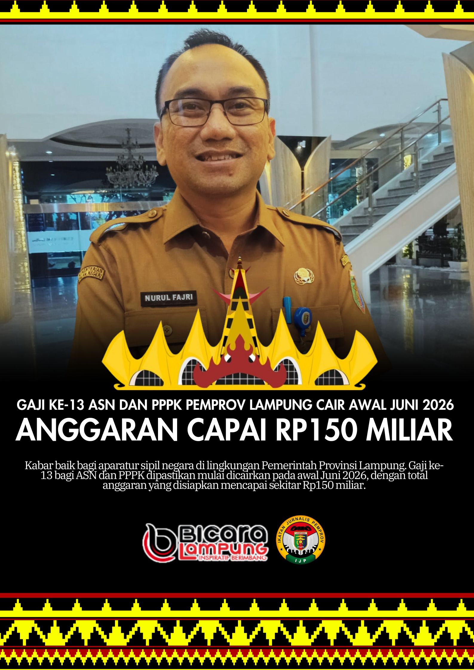BICARALAMPUNG — Kabar baik bagi aparatur sipil negara di lingkungan Pemerintah Provinsi Lampung. Gaji ke-13 bagi ASN dan PPPK dipastikan mulai dicairkan pada awal Juni 2026, dengan total anggaran yang disiapkan mencapai sekitar Rp150 miliar.
